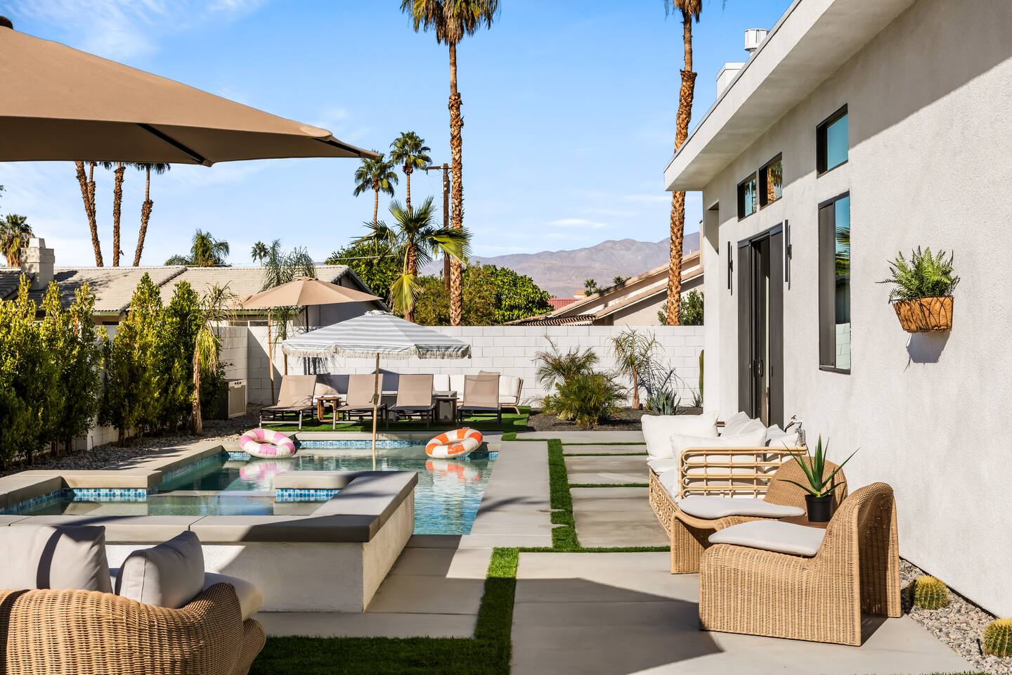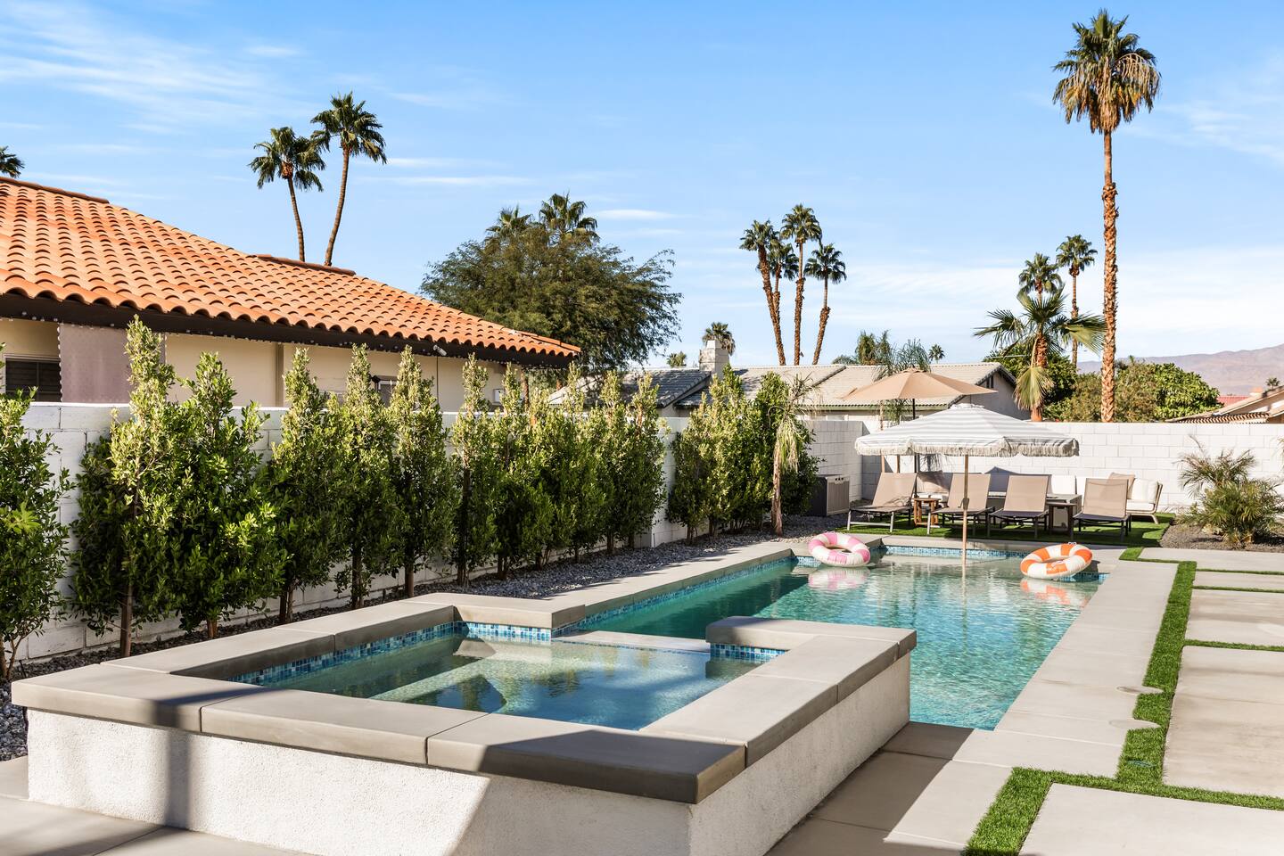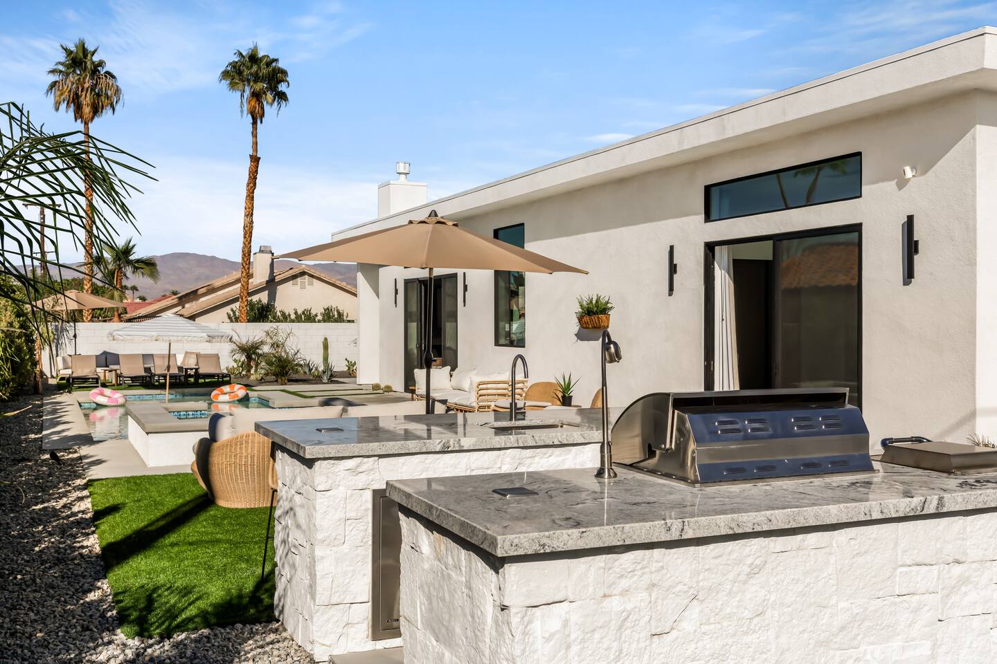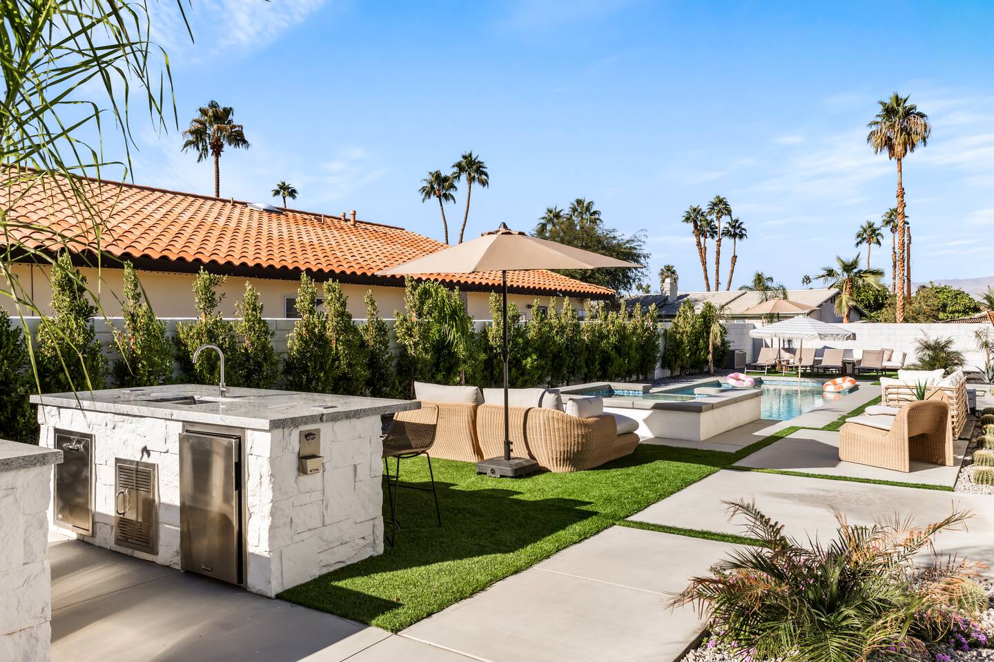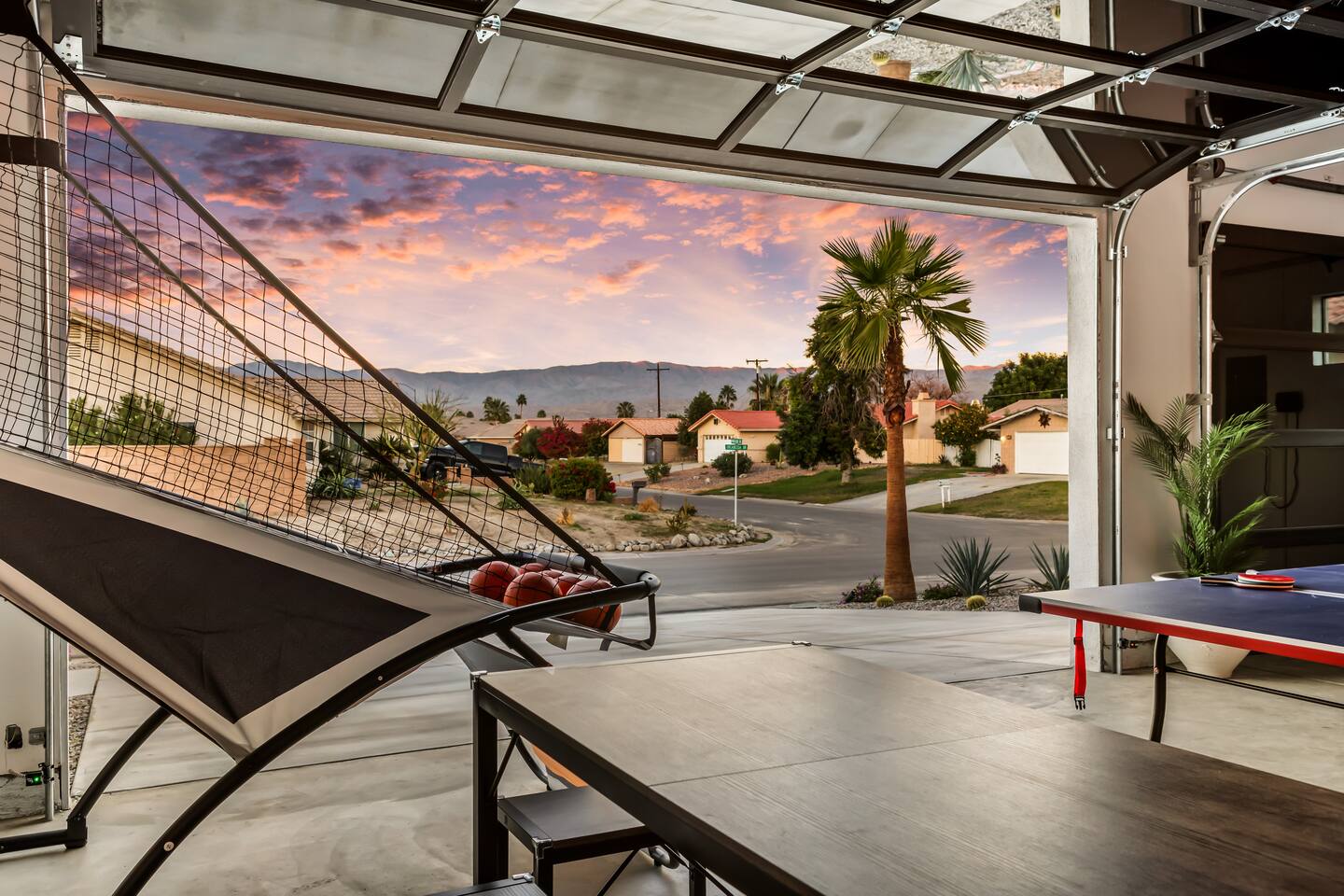 ✨ Welcome to Your Brand-New Bermuda Dunes Luxury Oasis ✨ Escape to a stunning resort-style desert retreat where luxury, comfort, and entertainment blend seamlessly. Perfect for family getaways, golf trips, festival stays, or relaxing escapes, this modern home offers sun-drenched outdoor living, designer interiors, and countless activities—creating the perfect backdrop for unforgettable memories. ✨ Key Features & Luxury Amenities ✨ ◆ 4 Spacious Bedrooms – Sleep 12+ in Comfort & Style Plush king and queen beds, premium linens, and flexible extra sleeping options (rollaways + air mattress) create a restful retreat for families and groups. ◆ Open-Concept Luxury Living Bright, airy living room with ample seating and seamless indoor–outdoor flow—perfect for gatherings, movie nights, and relaxed mornings with mountain views. ◆ Designer Chef’s Kitchen Fully stocked for gourmet cooking and entertaining with a THOR 6-burner stove, large oven, microwave, dishwasher, toaster, air fryer, blender, rice cooker, full cookware set, kids’ dishes, and a dual Keurig with complimentary pods. ◆ Dining for the Whole Group Enjoy meals together at the 8-seat dining table or casual bites at the 4-seat kitchen bar—ideal for family dinners, brunches, or game nights. ◆ Resort-Style Pool & Spa Brand-new pool with a cabo shelf for shallow lounging and kid-friendly play, plus a complimentary heated spa for dreamy desert evenings under the stars. ◆ Expansive Backyard Oasis Multiple outdoor seating areas, stylish chaise loungers, a relaxing lounge bed, and a large dining table for al fresco meals—your private Palm Springs–style retreat. ◆ Outdoor Kitchen & Bar Built-in BBQ, sink with hot/cold water, outdoor refrigerator, and bar seating—perfect for grilling, cocktails, and outdoor entertaining. ◆ Cozy Fire Pit Lounge A warm, inviting space for sunset conversations, s’mores, stargazing, and cozy desert nights. ◆ Outdoor Entertainment Private putting green, cornhole, and open space for family-friendly fun and friendly competition. ◆ Garage Game Room – Endless Entertainment SkyTrak golf simulator, ping-pong table, basketball arcade game, dart board, and a 55" TV—perfect for guests of all ages. ◆ Family-Friendly Essentials Includes a high-chair, Pack ’n Play, and a selection of board games for added convenience and comfort. ◆ Hotel-Quality Comforts Public Goods toiletries, plush towels, and thoughtful touches throughout for a luxury stay. ◆ Convenient Modern Amenities In-home washer/dryer, central AC/heat, indoor/outdoor portable speaker, and fast WiFi for work or leisure. ◆ EV/Tesla Charger – Complimentary Access Free EV charging available with advance notice so we can enable access prior to your arrival. 🛏 Bedroom & Bathroom Details ✨ Master Suite – Your Private Sanctuary • King bed with premium bedding • Spacious walk-in closet • Desk for remote work or planning your adventures • 55” TV • Elegant ensuite bathroom with dual sinks + walk-in shower • Includes 2 twin rollaway beds + queen air mattress for flexible sleeping arrangements ✨ Bedroom 2 – Calm & Comfortable • King bed • Large closet ✨ Bedroom 3 – Sunlit and Inviting • King bed • Closet ✨ Bedroom 4 – Ideal for Groups or Kids • Two Queen beds • Closet • Private ensuite bathroom with shower/tub combo ✨ Shared Hall Bathroom Between Rooms 2 and 3 • Dual sinks • Walk-in shower ✨ Additional Half Bathroom Conveniently located off the living room for easy guest access. 🌴 Backyard Resort Oasis Experience your own private desert resort, designed for sun-soaked days, laughter-filled evenings, and unforgettable outdoor living—all framed by breathtaking 360° mountain views and stunning sunrise and sunset backdrops that make every moment magical. 🌊 Resort-Style Pool + Spa ◆ Heated pool with optional heating ($75/day) ◆ Complimentary spa heating for nighttime relaxation ◆ Cabo shelf (sun deck) perfect for kids, tanning, or lounging with a drink ◆ Pool umbrellas, floaties & resort-like ambiance Enjoy refreshing swims by day and stargazing from the bubbling spa with panoramic mountain views at night. 🍹 Multiple Outdoor Lounge Spaces ◆ 10-person dining table for al fresco meals ◆ 4 stylish chaise loungers for sunbathing ◆ Outdoor lounge bed for luxurious relaxation ◆ Cozy sofa seating areas perfect for morning coffee, reading, or sunset chats Designed to feel like your own private resort—with the mountains glowing pink at sunrise and golden at sunset. 🔥 Fire Pit Lounge Gather around the glowing fire pit on cool desert nights—perfect for s’mores, storytelling, cocktails, or simply unwinding beneath the stars and mountain silhouettes. 🍽 Outdoor Kitchen + Bar ◆ Built-in BBQ ◆ Sink with hot/cold water ◆ Outdoor fridge for chilled drinks ◆ Bar seating for 4—your ideal outdoor entertaining hub The perfect setup for grilling, dining, and hosting poolside with views that elevate every meal. ⛳ Outdoor Games & Activities ◆ Putting green for casual practice or friendly competitions ◆ Cornhole for kids and adults alike There’s something for everyone—all enjoyed with unbeatable mountain scenery. 🎮 Garage Game Room (A True Entertainment Haven) Turn the garage into your personal arcade and golf studio. • SkyTrak Golf Simulator – play world-famous courses • Ping-Pong Table – fast-paced fun • Basketball Game – arcade-style shooting • Dart Board – classic competition • 55” TV – watch games, movies, or set up gaming Perfect for evening hangouts, rainy days, or all-day entertainment. 📍 Prime Coachella Valley Location – Close to Everything Stay in the center of it all—just minutes from world-class golf, spas, shopping, dining, hiking, and festival grounds. 3 min ➔ 10 Freeway 5 min ➔ Indian Wells Tennis Garden 10 min ➔ Acrisure Arena 12 min ➔ Old Town La Quinta 15 min ➔ Empire Polo Club