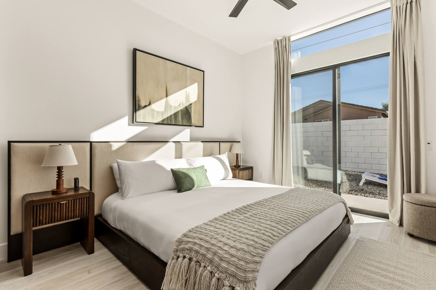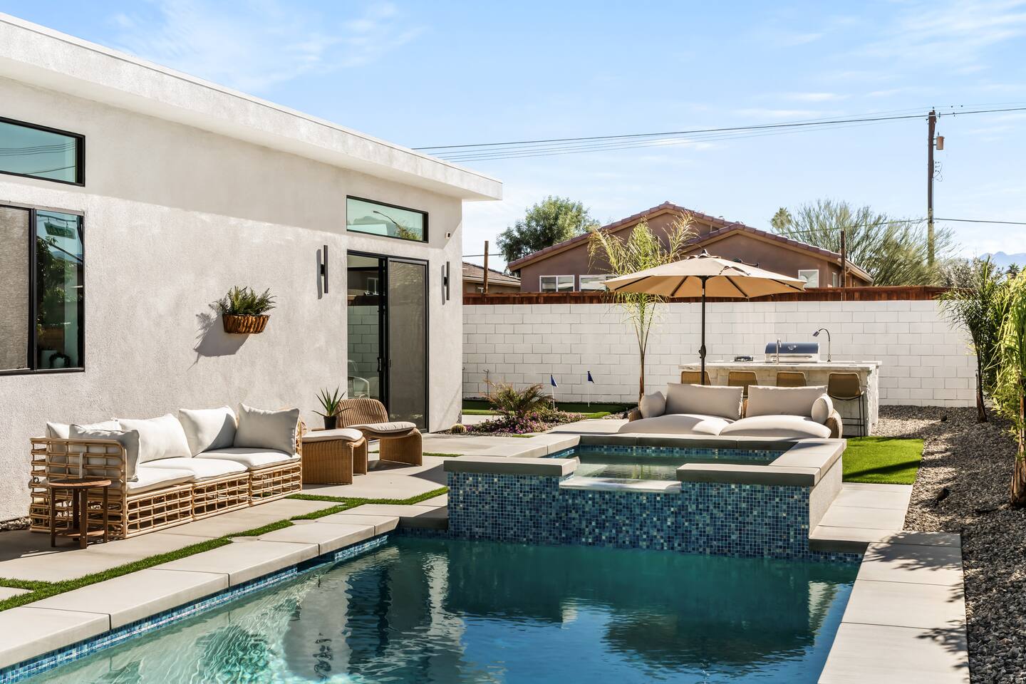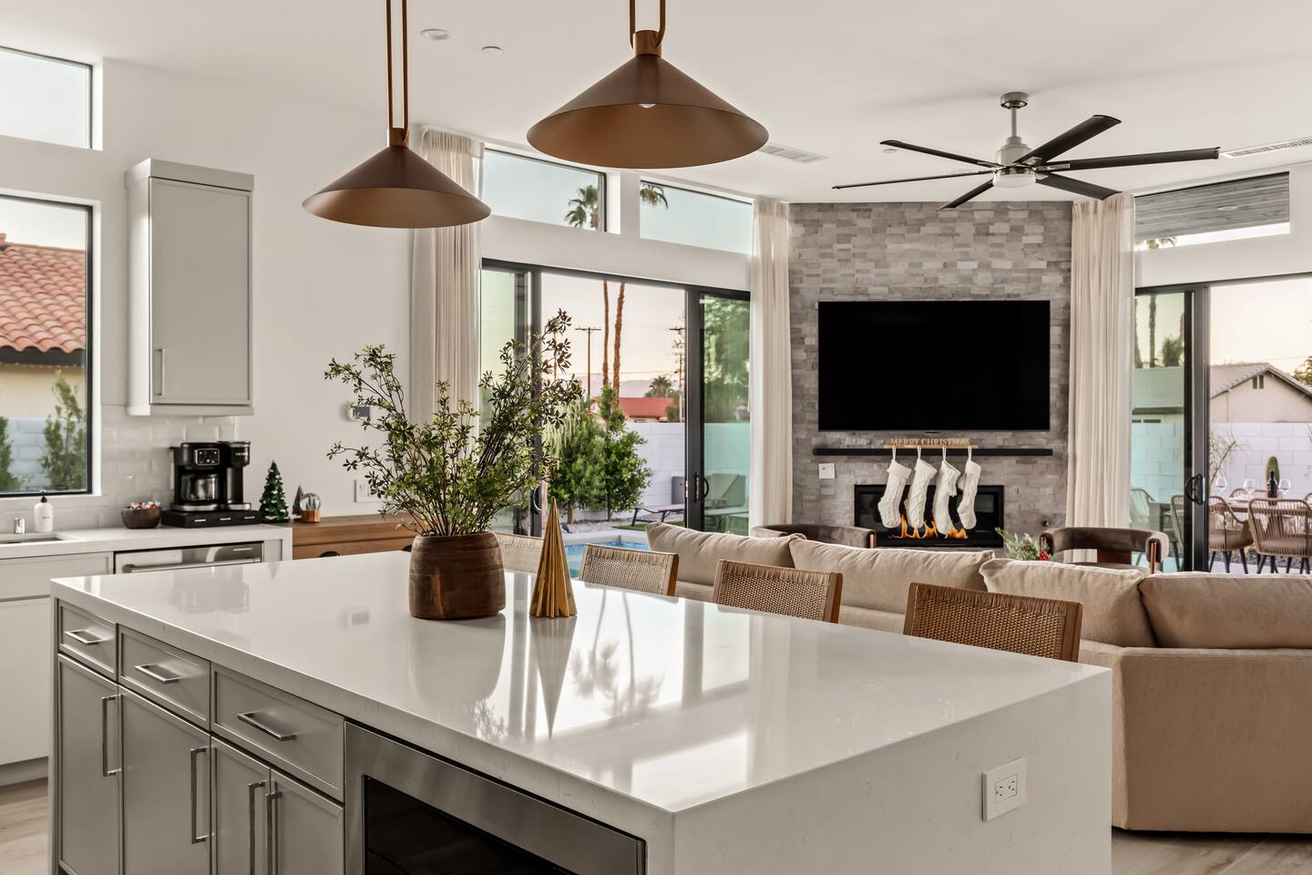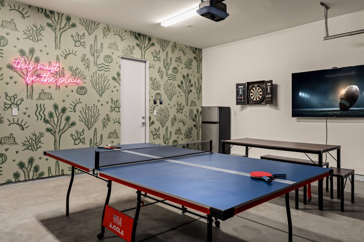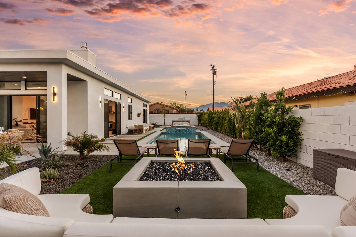 ✨ Welcome to Your Brand-New Bermuda Dunes Luxury Oasis ✨ Escape to a stunning resort-style desert retreat where luxury, comfort, and entertainment blend seamlessly. Perfect for family getaways, golf trips, festival stays, or relaxing escapes, this modern home offers sun-drenched outdoor living, designer interiors, and countless activities—creating the perfect backdrop for unforgettable memories. ✨ Key Features & Luxury Amenities ✨ ◆ 4 Spacious Bedrooms – Sleep 12+ in Comfort & Style Plush king and queen beds, premium linens, and flexible extra sleeping options (rollaways + air mattress) create a restful retreat for families and groups. ◆ Open-Concept Luxury Living Bright, airy living room with ample seating and seamless indoor–outdoor flow—perfect for gatherings, movie nights, and relaxed mornings with mountain views. ◆ Designer Chef’s Kitchen Fully stocked for gourmet cooking and entertaining with a THOR 6-burner stove, large oven, microwave, dishwasher, toaster, air fryer, blender, rice cooker, full cookware set, kids’ dishes, and a dual Keurig with complimentary pods. ◆ Dining for the Whole Group Enjoy meals together at the 8-seat dining table or casual bites at the 4-seat kitchen bar—ideal for family dinners, brunches, or game nights. ◆ Resort-Style Pool & Spa Brand-new pool with a cabo shelf for shallow lounging and kid-friendly play, plus a complimentary heated spa for dreamy desert evenings under the stars. ◆ Expansive Backyard Oasis Multiple outdoor seating areas, stylish chaise loungers, a relaxing lounge bed, and a large dining table for al fresco meals—your private Palm Springs–style retreat. ◆ Outdoor Kitchen & Bar Built-in BBQ, sink with hot/cold water, outdoor refrigerator, and bar seating—perfect for grilling, cocktails, and outdoor entertaining. ◆ Cozy Fire Pit Lounge A warm, inviting space for sunset conversations, s’mores, stargazing, and cozy desert nights. ◆ Outdoor Entertainment Private putting green, cornhole, and open space for family-friendly fun and friendly competition. ◆ Garage Game Room – Endless Entertainment SkyTrak golf simulator, ping-pong table, basketball arcade game, dart board, and a 55" TV—perfect for guests of all ages. ◆ Family-Friendly Essentials Includes a high-chair, Pack ’n Play, and a selection of board games for added convenience and comfort. ◆ Hotel-Quality Comforts Public Goods toiletries, plush towels, and thoughtful touches throughout for a luxury stay. ◆ Convenient Modern Amenities In-home washer/dryer, central AC/heat, indoor/outdoor portable speaker, and fast WiFi for work or leisure. ◆ EV/Tesla Charger – Complimentary Access Free EV charging available with advance notice so we can enable access prior to your arrival. 🛏 Bedroom & Bathroom Details ✨ Master Suite – Your Private Sanctuary • King bed with premium bedding • Spacious walk-in closet • Desk for remote work or planning your adventures • 55” TV • Elegant ensuite bathroom with dual sinks + walk-in shower • Includes 2 twin rollaway beds + queen air mattress for flexible sleeping arrangements ✨ Bedroom 2 – Calm & Comfortable • King bed • Large closet ✨ Bedroom 3 – Sunlit and Inviting • King bed • Closet ✨ Bedroom 4 – Ideal for Groups or Kids • Two Queen beds • Closet • Private ensuite bathroom with shower/tub combo ✨ Shared Hall Bathroom Between Rooms 2 and 3 • Dual sinks • Walk-in shower ✨ Additional Half Bathroom Conveniently located off the living room for easy guest access. 🌴 Backyard Resort Oasis Experience your own private desert resort, designed for sun-soaked days, laughter-filled evenings, and unforgettable outdoor living—all framed by breathtaking 360° mountain views and stunning sunrise and sunset backdrops that make every moment magical. 🌊 Resort-Style Pool + Spa ◆ Heated pool with optional heating ($75/day) ◆ Complimentary spa heating for nighttime relaxation ◆ Cabo shelf (sun deck) perfect for kids, tanning, or lounging with a drink ◆ Pool umbrellas, floaties & resort-like ambiance Enjoy refreshing swims by day and stargazing from the bubbling spa with panoramic mountain views at night. 🍹 Multiple Outdoor Lounge Spaces ◆ 10-person dining table for al fresco meals ◆ 4 stylish chaise loungers for sunbathing ◆ Outdoor lounge bed for luxurious relaxation ◆ Cozy sofa seating areas perfect for morning coffee, reading, or sunset chats Designed to feel like your own private resort—with the mountains glowing pink at sunrise and golden at sunset. 🔥 Fire Pit Lounge Gather around the glowing fire pit on cool desert nights—perfect for s’mores, storytelling, cocktails, or simply unwinding beneath the stars and mountain silhouettes. 🍽 Outdoor Kitchen + Bar ◆ Built-in BBQ ◆ Sink with hot/cold water ◆ Outdoor fridge for chilled drinks ◆ Bar seating for 4—your ideal outdoor entertaining hub The perfect setup for grilling, dining, and hosting poolside with views that elevate every meal. ⛳ Outdoor Games & Activities ◆ Putting green for casual practice or friendly competitions ◆ Cornhole for kids and adults alike There’s something for everyone—all enjoyed with unbeatable mountain scenery. 🎮 Garage Game Room (A True Entertainment Haven) Turn the garage into your personal arcade and golf studio. • SkyTrak Golf Simulator – play world-famous courses • Ping-Pong Table – fast-paced fun • Basketball Game – arcade-style shooting • Dart Board – classic competition • 55” TV – watch games, movies, or set up gaming Perfect for evening hangouts, rainy days, or all-day entertainment. 📍 Prime Coachella Valley Location – Close to Everything Stay in the center of it all—just minutes from world-class golf, spas, shopping, dining, hiking, and festival grounds. 3 min ➔ 10 Freeway 5 min ➔ Indian Wells Tennis Garden 10 min ➔ Acrisure Arena 12 min ➔ Old Town La Quinta 15 min ➔ Empire Polo Club