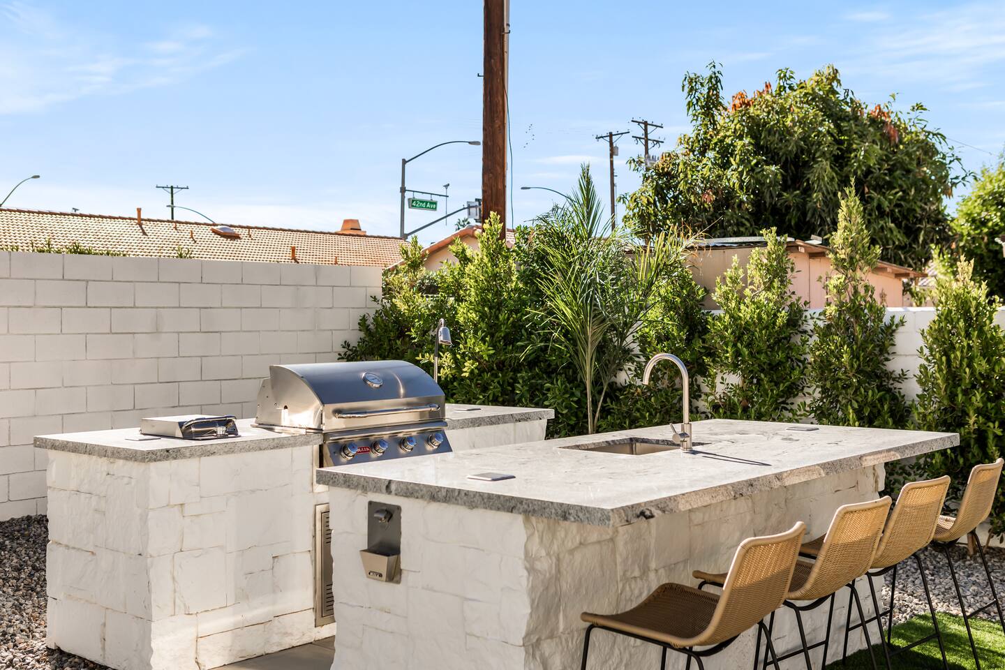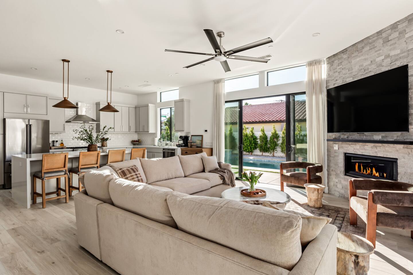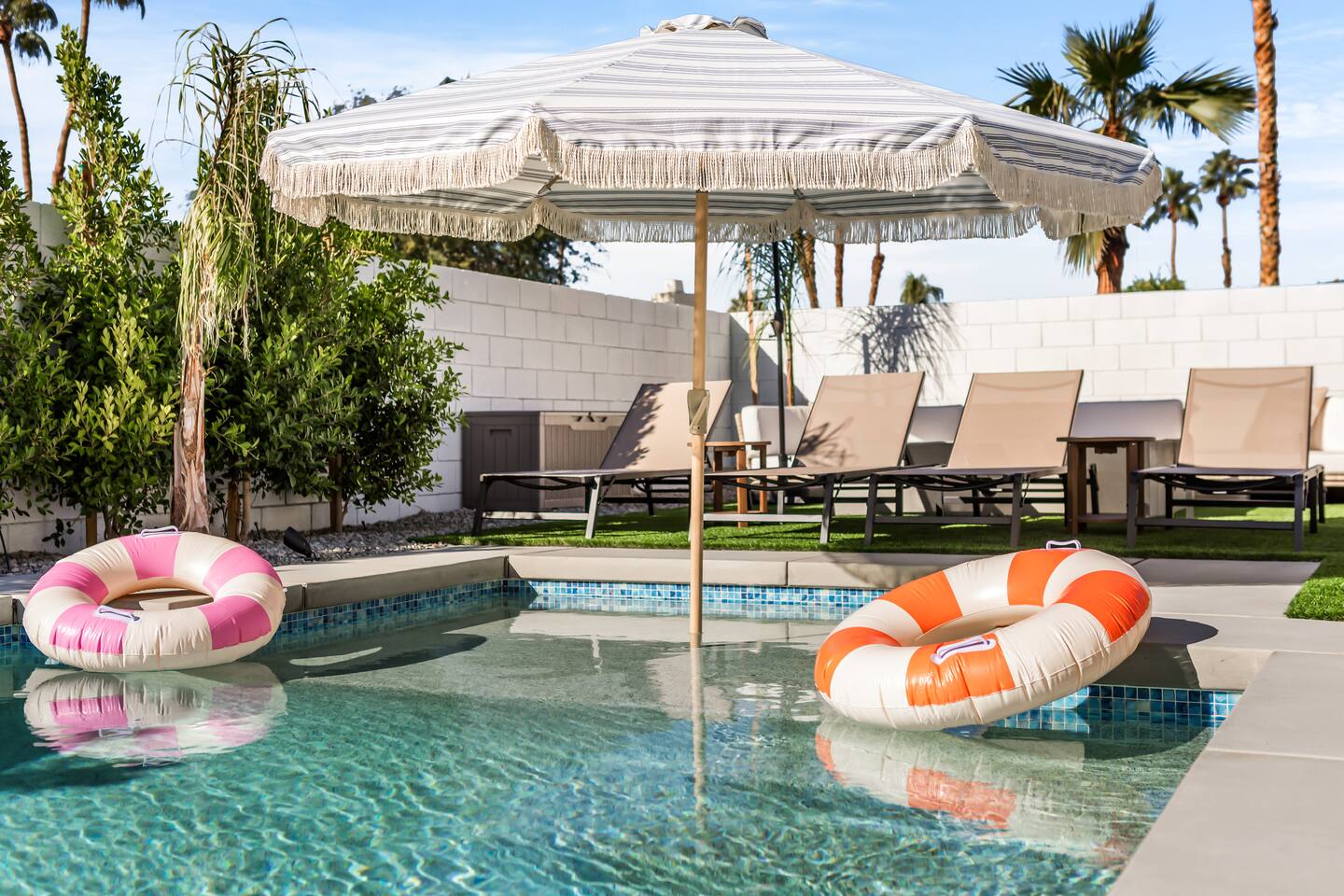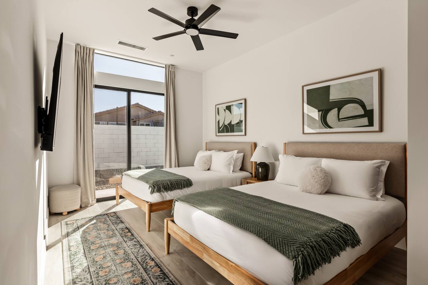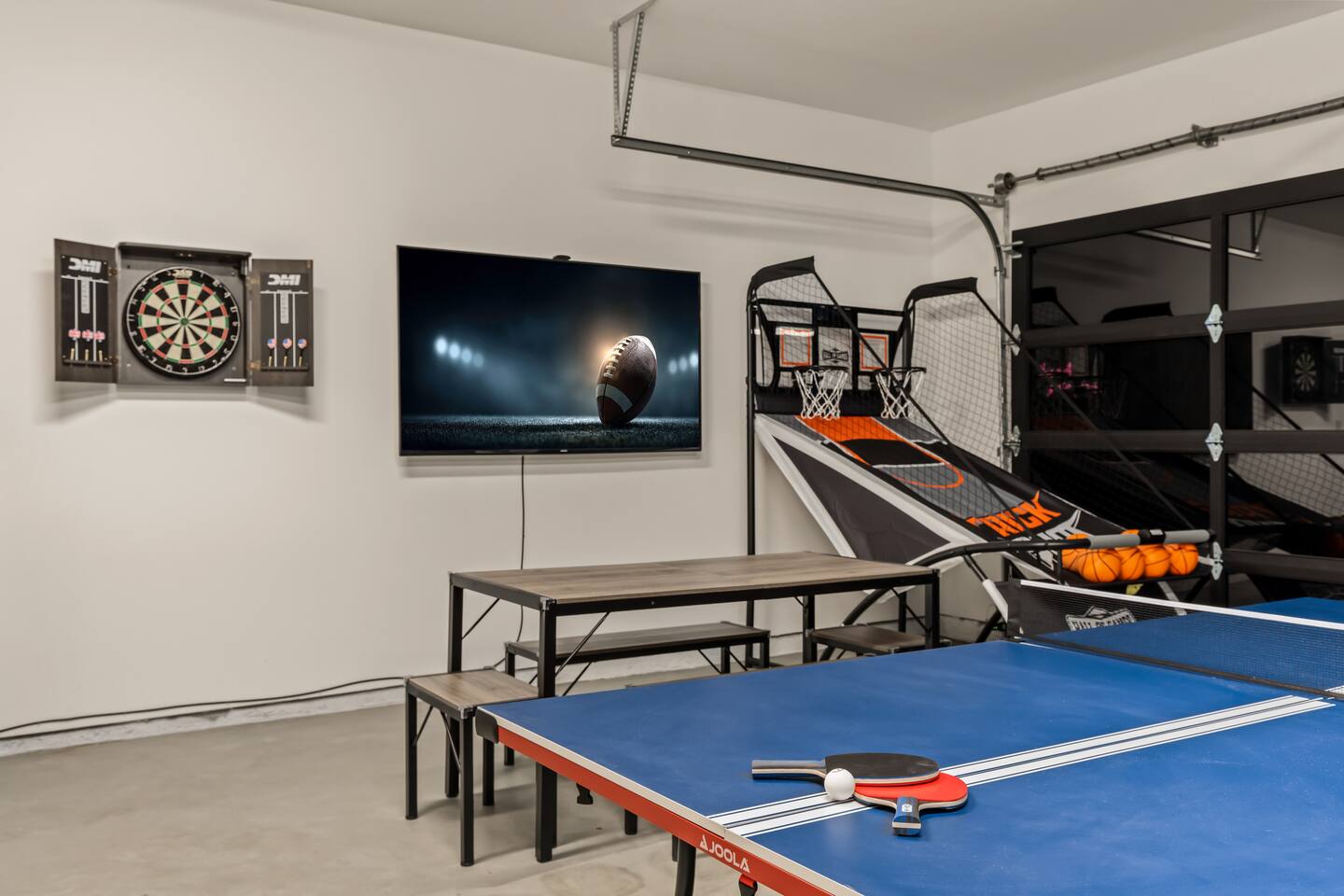 ✨ Welcome to Your Brand-New Bermuda Dunes Luxury Oasis ✨ Escape to a stunning resort-style desert retreat where luxury, comfort, and entertainment blend seamlessly. Perfect for family getaways, golf trips, festival stays, or relaxing escapes, this modern home offers sun-drenched outdoor living, designer interiors, and countless activities—creating the perfect backdrop for unforgettable memories. ✨ Key Features & Luxury Amenities ✨ ◆ 4 Spacious Bedrooms – Sleep 12+ in Comfort & Style Plush king and queen beds, premium linens, and flexible extra sleeping options (rollaways + air mattress) create a restful retreat for families and groups. ◆ Open-Concept Luxury Living Bright, airy living room with ample seating and seamless indoor–outdoor flow—perfect for gatherings, movie nights, and relaxed mornings with mountain views. ◆ Designer Chef’s Kitchen Fully stocked for gourmet cooking and entertaining with a THOR 6-burner stove, large oven, microwave, dishwasher, toaster, air fryer, blender, rice cooker, full cookware set, kids’ dishes, and a dual Keurig with complimentary pods. ◆ Dining for the Whole Group Enjoy meals together at the 8-seat dining table or casual bites at the 4-seat kitchen bar—ideal for family dinners, brunches, or game nights. ◆ Resort-Style Pool & Spa Brand-new pool with a cabo shelf for shallow lounging and kid-friendly play, plus a complimentary heated spa for dreamy desert evenings under the stars. ◆ Expansive Backyard Oasis Multiple outdoor seating areas, stylish chaise loungers, a relaxing lounge bed, and a large dining table for al fresco meals—your private Palm Springs–style retreat. ◆ Outdoor Kitchen & Bar Built-in BBQ, sink with hot/cold water, outdoor refrigerator, and bar seating—perfect for grilling, cocktails, and outdoor entertaining. ◆ Cozy Fire Pit Lounge A warm, inviting space for sunset conversations, s’mores, stargazing, and cozy desert nights. ◆ Outdoor Entertainment Private putting green, cornhole, and open space for family-friendly fun and friendly competition. ◆ Garage Game Room – Endless Entertainment SkyTrak golf simulator, ping-pong table, basketball arcade game, dart board, and a 55" TV—perfect for guests of all ages. ◆ Family-Friendly Essentials Includes a high-chair, Pack ’n Play, and a selection of board games for added convenience and comfort. ◆ Hotel-Quality Comforts Public Goods toiletries, plush towels, and thoughtful touches throughout for a luxury stay. ◆ Convenient Modern Amenities In-home washer/dryer, central AC/heat, indoor/outdoor portable speaker, and fast WiFi for work or leisure. ◆ EV/Tesla Charger – Complimentary Access Free EV charging available with advance notice so we can enable access prior to your arrival. 🛏 Bedroom & Bathroom Details ✨ Master Suite – Your Private Sanctuary • King bed with premium bedding • Spacious walk-in closet • Desk for remote work or planning your adventures • 55” TV • Elegant ensuite bathroom with dual sinks + walk-in shower • Includes 2 twin rollaway beds + queen air mattress for flexible sleeping arrangements ✨ Bedroom 2 – Calm & Comfortable • King bed • Large closet ✨ Bedroom 3 – Sunlit and Inviting • King bed • Closet ✨ Bedroom 4 – Ideal for Groups or Kids • Two Queen beds • Closet • Private ensuite bathroom with shower/tub combo ✨ Shared Hall Bathroom Between Rooms 2 and 3 • Dual sinks • Walk-in shower ✨ Additional Half Bathroom Conveniently located off the living room for easy guest access. 🌴 Backyard Resort Oasis Experience your own private desert resort, designed for sun-soaked days, laughter-filled evenings, and unforgettable outdoor living—all framed by breathtaking 360° mountain views and stunning sunrise and sunset backdrops that make every moment magical. 🌊 Resort-Style Pool + Spa ◆ Heated pool with optional heating ($75/day) ◆ Complimentary spa heating for nighttime relaxation ◆ Cabo shelf (sun deck) perfect for kids, tanning, or lounging with a drink ◆ Pool umbrellas, floaties & resort-like ambiance Enjoy refreshing swims by day and stargazing from the bubbling spa with panoramic mountain views at night. 🍹 Multiple Outdoor Lounge Spaces ◆ 10-person dining table for al fresco meals ◆ 4 stylish chaise loungers for sunbathing ◆ Outdoor lounge bed for luxurious relaxation ◆ Cozy sofa seating areas perfect for morning coffee, reading, or sunset chats Designed to feel like your own private resort—with the mountains glowing pink at sunrise and golden at sunset. 🔥 Fire Pit Lounge Gather around the glowing fire pit on cool desert nights—perfect for s’mores, storytelling, cocktails, or simply unwinding beneath the stars and mountain silhouettes. 🍽 Outdoor Kitchen + Bar ◆ Built-in BBQ ◆ Sink with hot/cold water ◆ Outdoor fridge for chilled drinks ◆ Bar seating for 4—your ideal outdoor entertaining hub The perfect setup for grilling, dining, and hosting poolside with views that elevate every meal. ⛳ Outdoor Games & Activities ◆ Putting green for casual practice or friendly competitions ◆ Cornhole for kids and adults alike There’s something for everyone—all enjoyed with unbeatable mountain scenery. 🎮 Garage Game Room (A True Entertainment Haven) Turn the garage into your personal arcade and golf studio. • SkyTrak Golf Simulator – play world-famous courses • Ping-Pong Table – fast-paced fun • Basketball Game – arcade-style shooting • Dart Board – classic competition • 55” TV – watch games, movies, or set up gaming Perfect for evening hangouts, rainy days, or all-day entertainment. 📍 Prime Coachella Valley Location – Close to Everything Stay in the center of it all—just minutes from world-class golf, spas, shopping, dining, hiking, and festival grounds. 3 min ➔ 10 Freeway 5 min ➔ Indian Wells Tennis Garden 10 min ➔ Acrisure Arena 12 min ➔ Old Town La Quinta 15 min ➔ Empire Polo Club