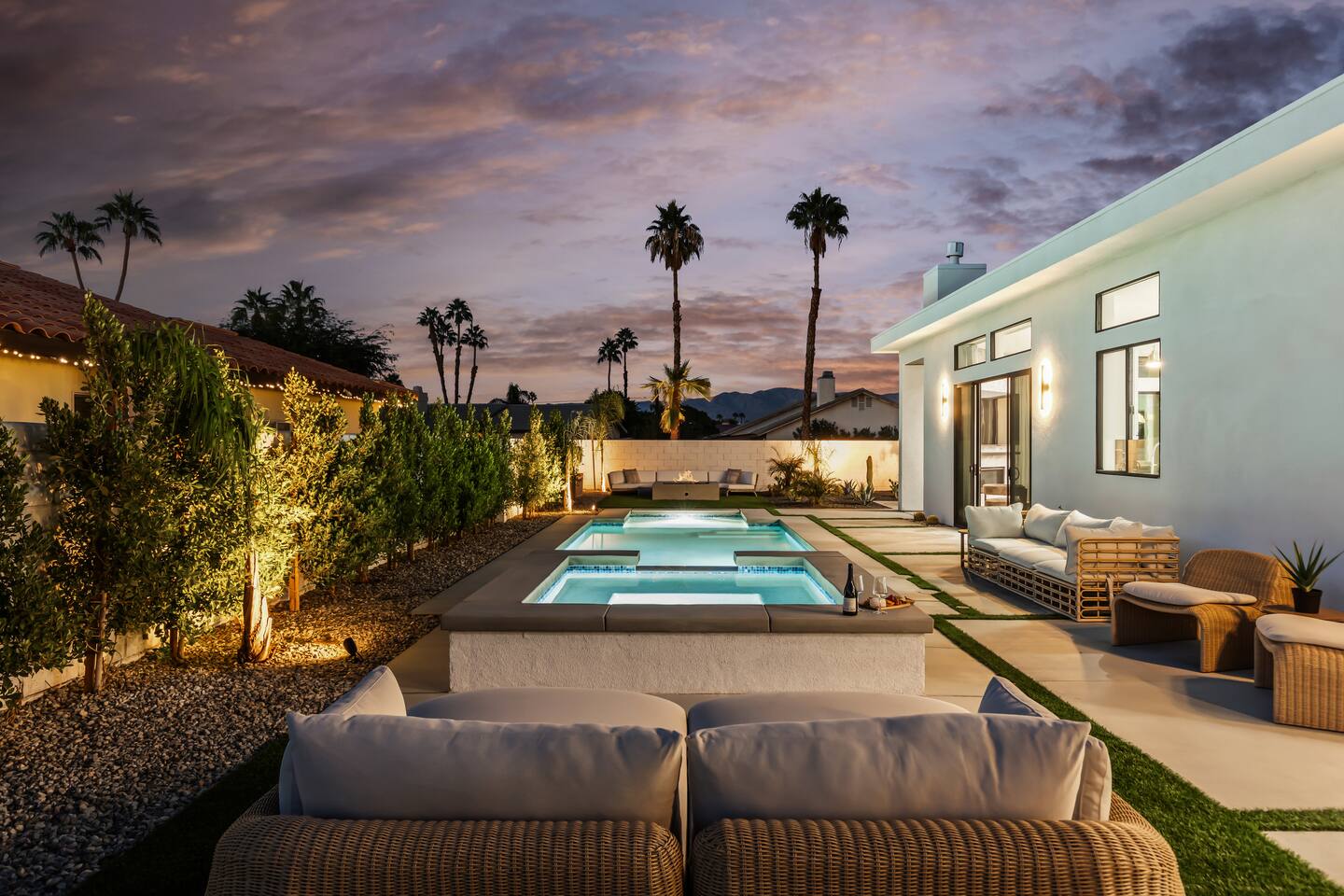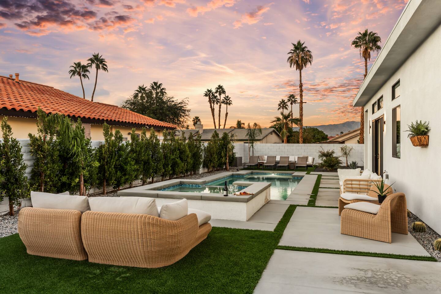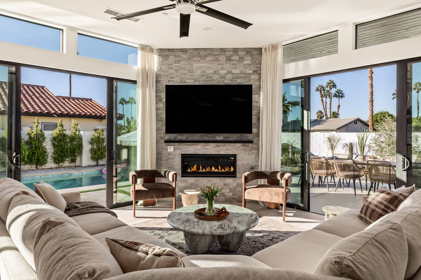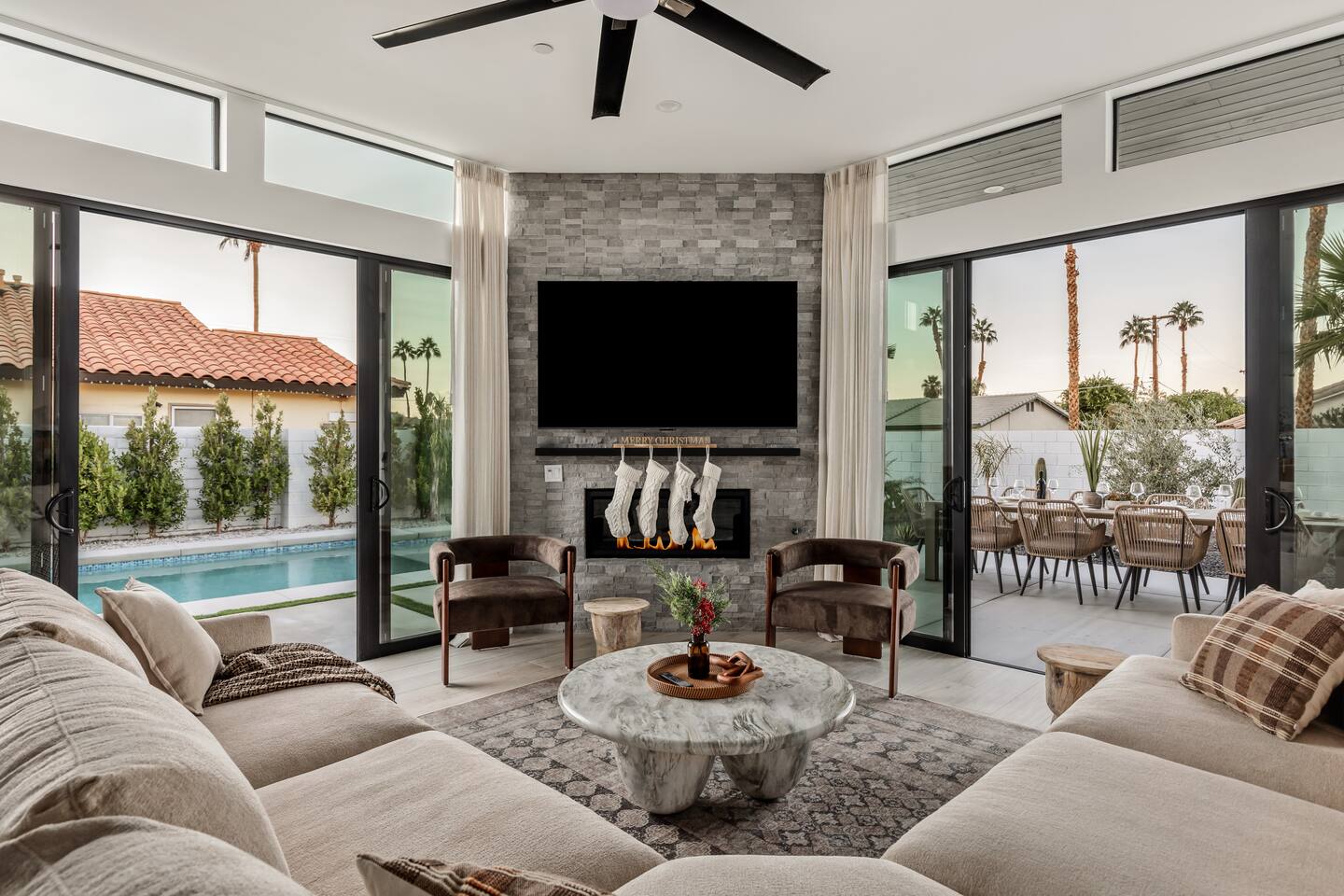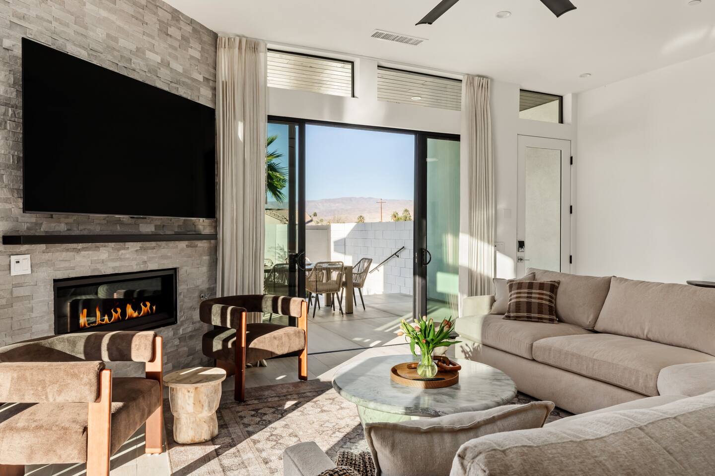 Experience luxury at our brand-new Bermuda Dunes oasis with 360° mountain views, a resort-style pool, spa, firepit lounge, putting green, outdoor kitchen, and EV/Tesla charger. Enjoy designer open-concept living, a chef’s kitchen, spacious suites, and a premium game room with a SkyTrak Golf Simulator. Minutes from Palm Desert, La Quinta, and Palm Springs—perfect for families and groups seeking an upscale desert escape.