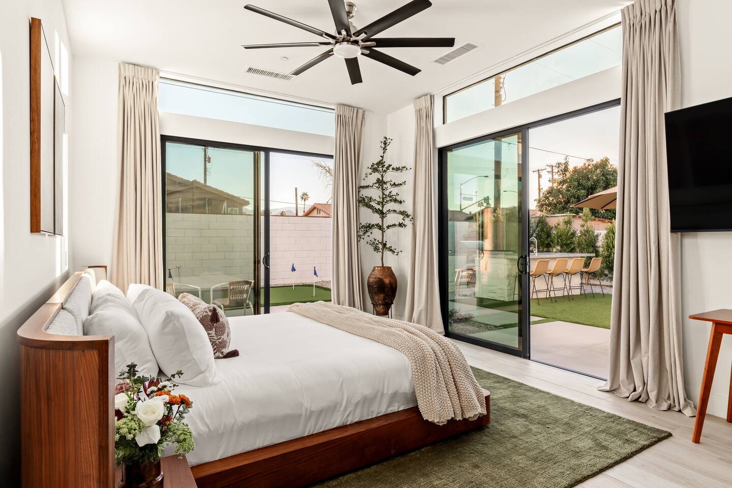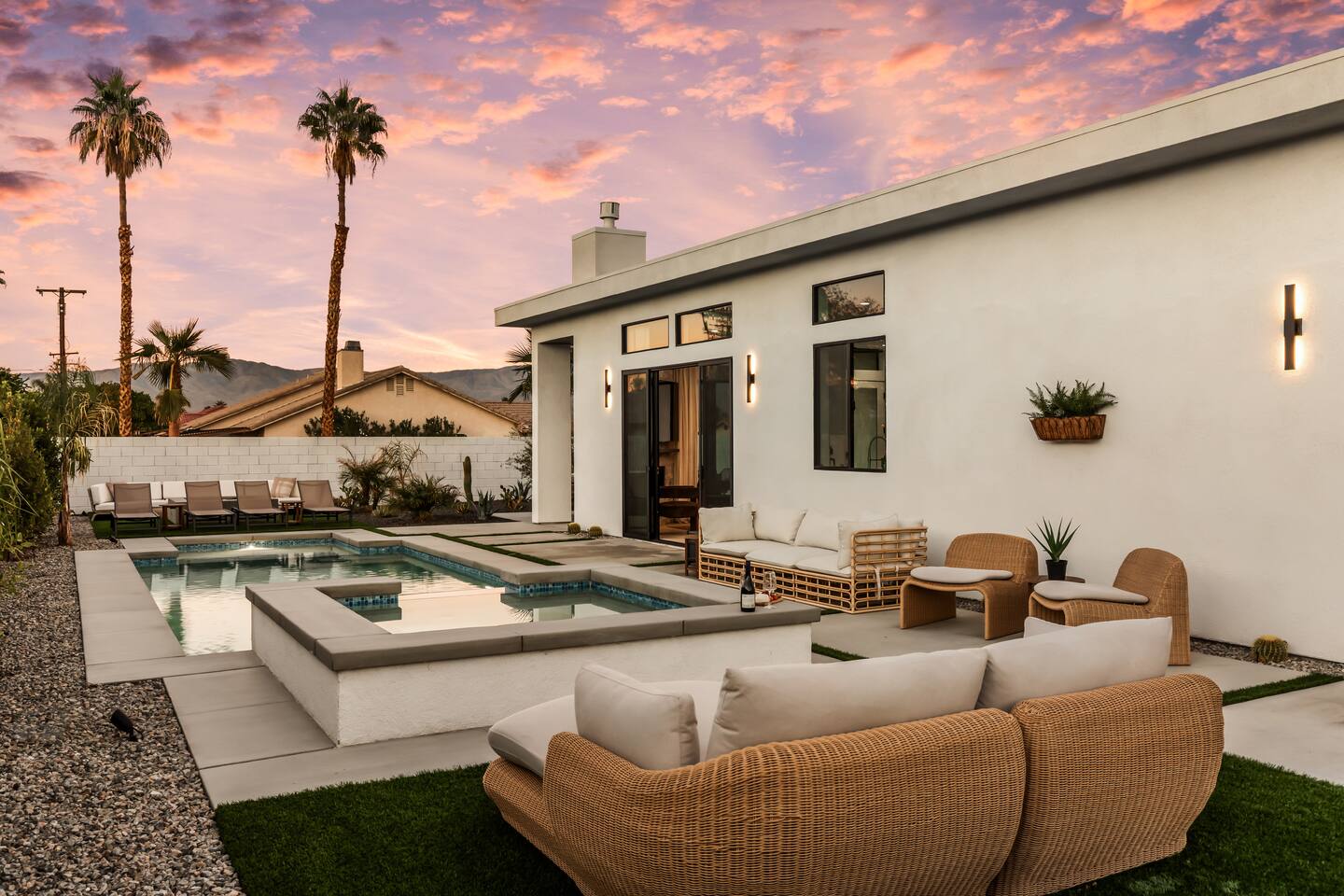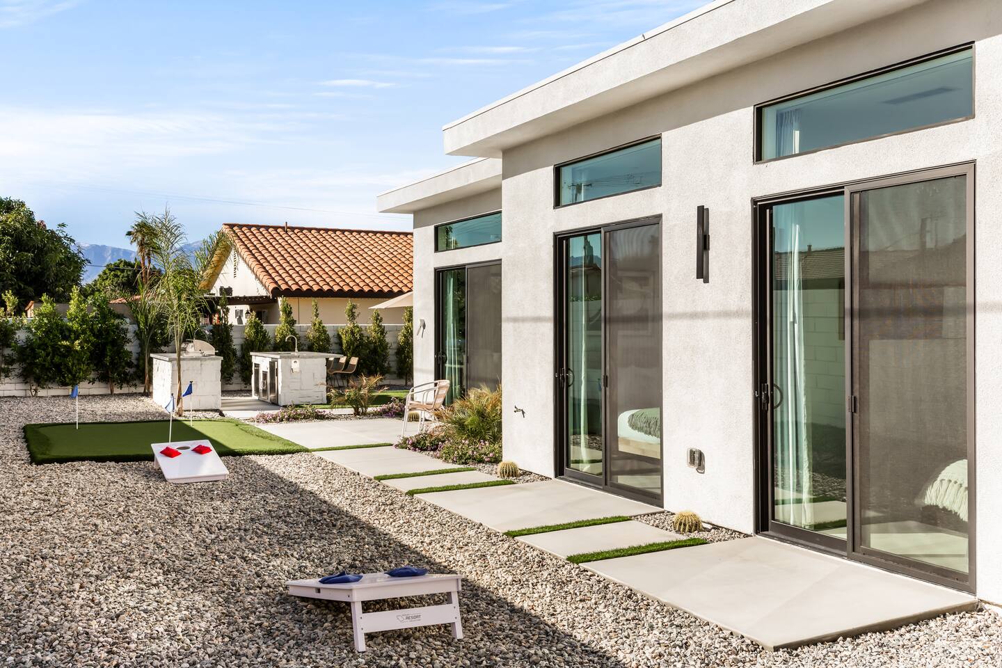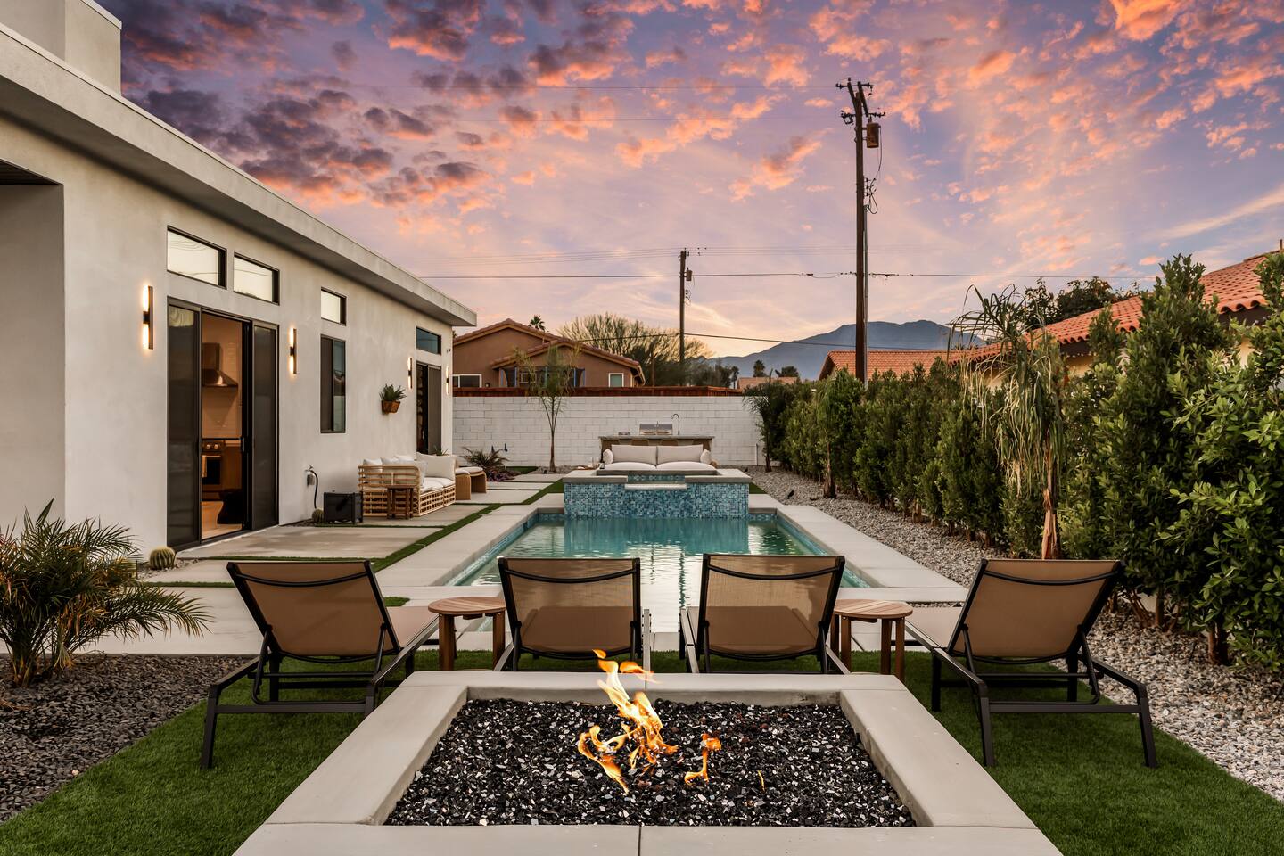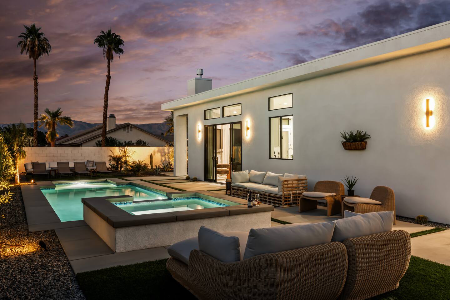 Experience luxury at our brand-new Bermuda Dunes oasis with 360° mountain views, a resort-style pool, spa, firepit lounge, putting green, outdoor kitchen, and EV/Tesla charger. Enjoy designer open-concept living, a chef’s kitchen, spacious suites, and a premium game room with a SkyTrak Golf Simulator. Minutes from Palm Desert, La Quinta, and Palm Springs—perfect for families and groups seeking an upscale desert escape.